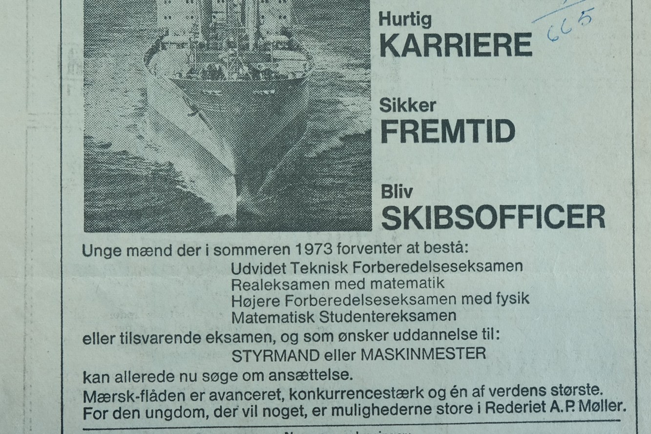 Leif har gemt Mærsk-annoncen fra 1972.