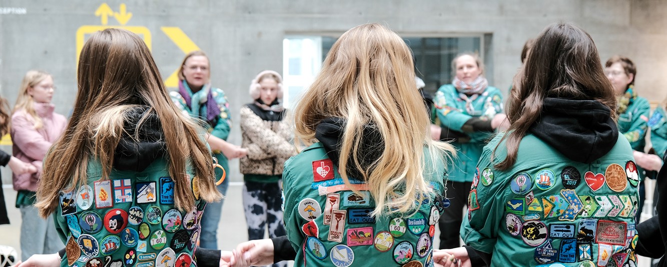 Hånd i hånd dannede pigespejderne en cirkel, alt imens de brød ud i sang. Tonerne gav genlyd på i den store bygning, der til dagligt summer af studieliv.