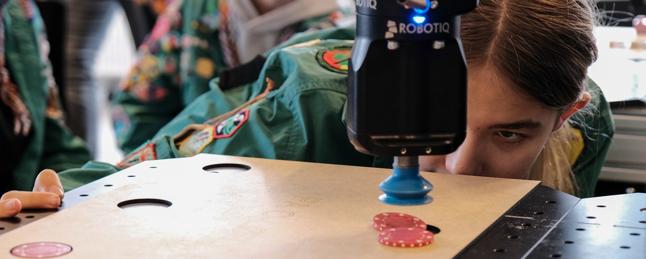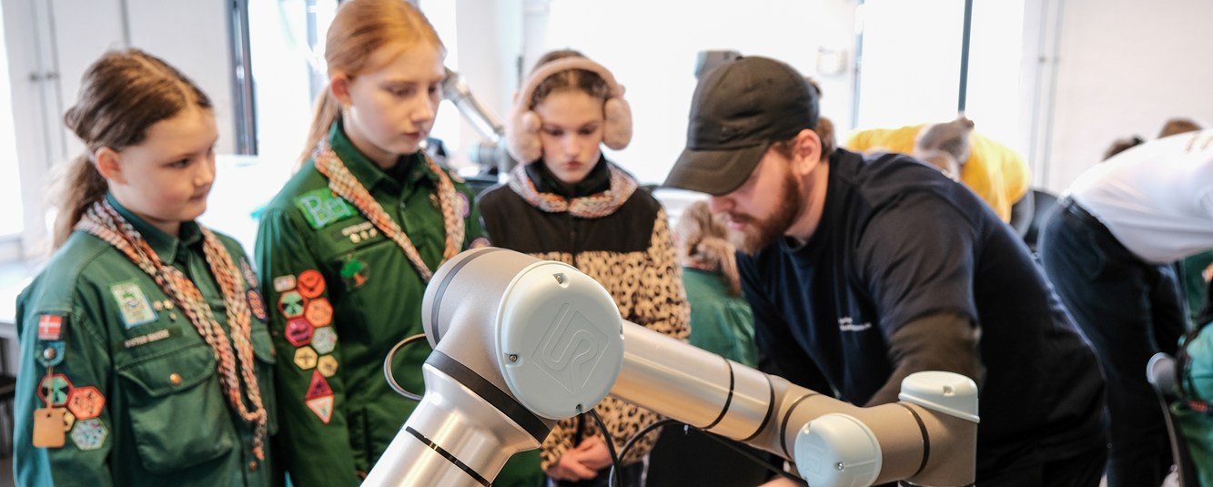 Opgaven bød på programmering, forståelse for automatisering i industrien og ikke mindst logisk tænkning. Elementer der reflekterer sig i uddannelsen som maskinmester. Maja Brandstrup, trop-leder for spejderne 2. Randers, cirkulerede rundt blandt de engagerede pigespejdere, som alle var dybt fokuserede på at få robotten til at adlyde deres ordre.