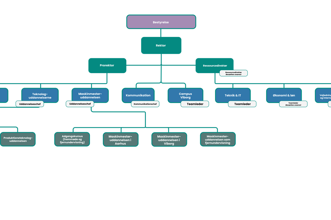 På Aarhus Maskinmesterskole er organisationen meget flad. Herved skabes et godt udgangspunkt for, at den enkelte medarbejder kan tage ansvar inden for sit kompetenceområde.