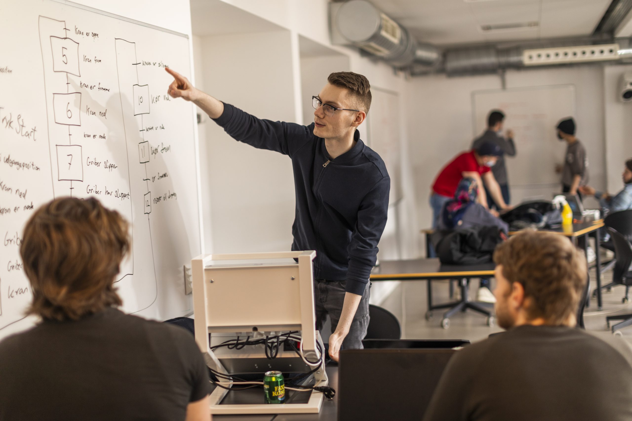 På 1. semester arbejder du med hele værdikæden fra idéudvikling til færdigt produkt – herunder tekniske tegninger og konstruktion. På 2. semester går vi i dybden med planlægning og styring af produktion. 3. semester ruster dig til at arbejde med forandring og fornyelse gennem disruption og redesign af eksisterende produkter og processer. På det afsluttende 4. semester bringer du din viden i spil i praksis – typisk gennem en praktikperiode i en relevant virksomhed.
